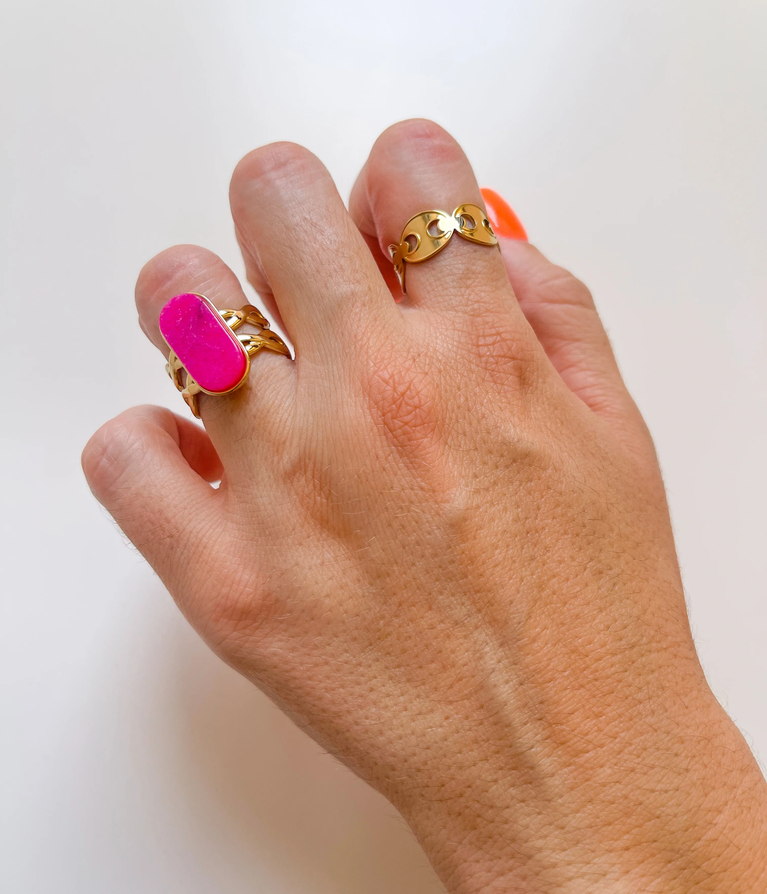 Anillo cadena color dorado. Es ajustable, sirve para todas las medidas.